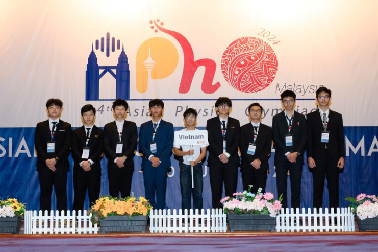 Cụ thể như sau: Em Thân Thế Công, học sinh học sinh lớp 12, Trường THPT chuyên Bắc Giang, Tỉnh Bắc Giang: Huy chương Vàng; em Hà Duyên Phúc, học sinh lớp 12, Trường THPT Chuyên Lam Sơn, Tỉnh Thanh Hoá: Huy chương Bạc; em Nguyễn Nhật Minh, học sinh học sinh lớp 12, Trường THPT Khoa học Tự nhiên, Trường Đại học Khoa học Tự nhiên (Đại học Quốc gia Hà Nội): Huy chương Đồng; em Nguyễn Thành Duy, học sinh lớp 12, Trường THPT Chuyên Trần Phú, Thành phố Hải Phòng: Huy chương Đồng; em Trương Phi Hùng, học sinh lớp 12, Trường THPT Chuyên Bắc Giang, Tỉnh Bắc Giang: Huy chương Đồng; em Hoàng Tuấn Kiệt, học sinh lớp 12, Trường THPT Chuyên Lam Sơn, Tỉnh Thanh Hoá: Huy chương Đồng; em Nguyễn Thế Quân, học sinh lớp 11, Trường THPT Chuyên Phan Bội Châu, Tỉnh Nghệ An: Huy chương Đồng; em Trần Vũ Lê Hoàng, học sinh lớp 12, Trường Trung học phổ thông Chuyên Lam Sơn, Tỉnh Thanh Hoá: Huy chương Đồng; Kỳ thi Olympic Vật lý Châu Á lần thứ 24 được tổ chức từ ngày 3/6 đến ngày 10/6 có 28 đội đoàn từ 27 quốc gia và vùng lãnh thổ với 208 thí sinh dự thi. Đây là kỳ APhO đầu tiên do Malaysia tổ chức với số đội tham dự nhiều nhất từ trước đến nay. Các thí sinh dự thi trải qua 2 ngày thi với thời gian thi 5 tiếng/ngày. Bài thi lý thuyết năm nay được xây dựng từ các ứng dụng thực tế và hiện đại của Vật lí như đài phun nước, cáp quang hay từ kết quả nghiên cứu được công bố trên tạp chí nổi tiếng Nature về vật lí thiên văn. Bài thi Thực nghiệm được xây dựng trên cơ sở thí nghiệm về con quay hồi chuyển, một hiệu ứng cơ học được ứng dụng rất nhiều trong thực tế như định vị chính xác trong hàng không hàng hải hay các thiết bị tự cân bằng. Với kết quả 8/8 học sinh giành huy chương, trong đó có 1 Huy chương Vàng, 1 Huy chương Bạc, 6 Huy chương Đồng, thành tích của đoàn Việt Nam dự thi AphO năm nay vượt trội hơn so với các năm trước và sau nhiều năm đoàn Việt Nam đã giành được Huy chương Vàng. Thành tích này tiếp nối tiếp chuỗi thành tích đoàn Việt Nam đạt được tại kì thi APhO trong những năm gần đây, luôn 8/8 học sinh đạt giải (năm 2022 gồm 1 Huy chương Bạc và 2 Huy chương Đồng, 5 Bằng khen; năm 2023 gồm 4 Huy chương Đồng và 4 Bằng khen). Ban Tổ chức APhO 2024 sẽ tổ Lễ bế mạc và trao giải vào ngày 9/6, bắt đầu từ lúc 18h30 (giờ Malaysia).Hoàng Thanh