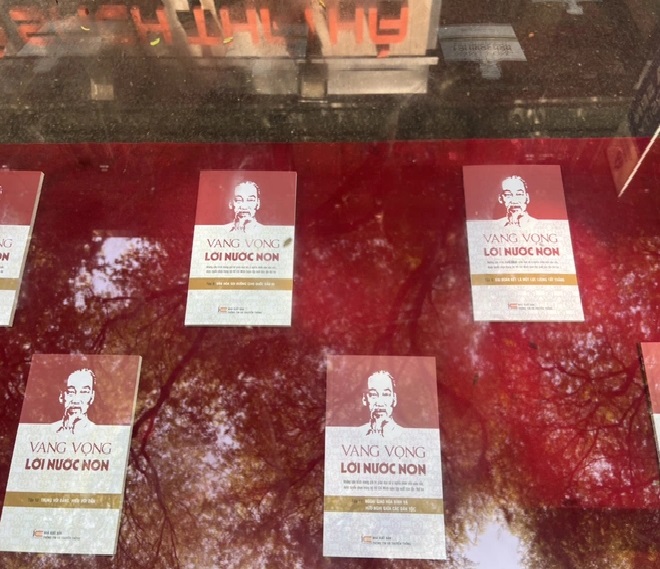 | Bộ sách Vang vọng lời nước non được trưng bày tại đường sách. Ảnh: Đường sách TP.HCM. |