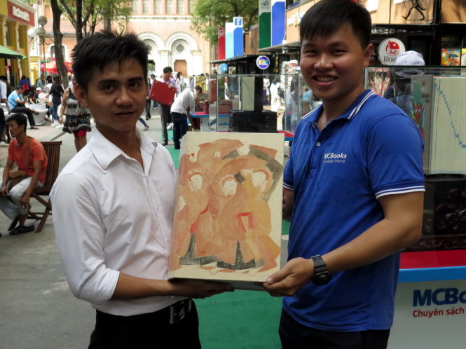 TT - Xuất hiện với kích cỡ “khổng lồ”, nặng 14kg, bìa là tranh của các họa sĩ đương đại hàng đầu Việt Nam, sáu quyển từ điển đặc biệt do Công ty MCBooks thực hiện giới thiệu tại Đường sách TP.HCM sáng 20-3.