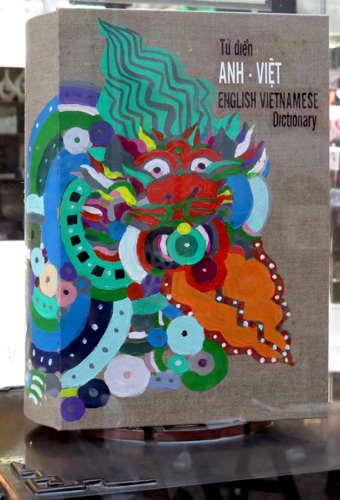 Quyển từ điển với bìa là bức tranh Con rồng châu Á của họa sĩ Đặng Xuân Hòa - Ảnh: L.Điền