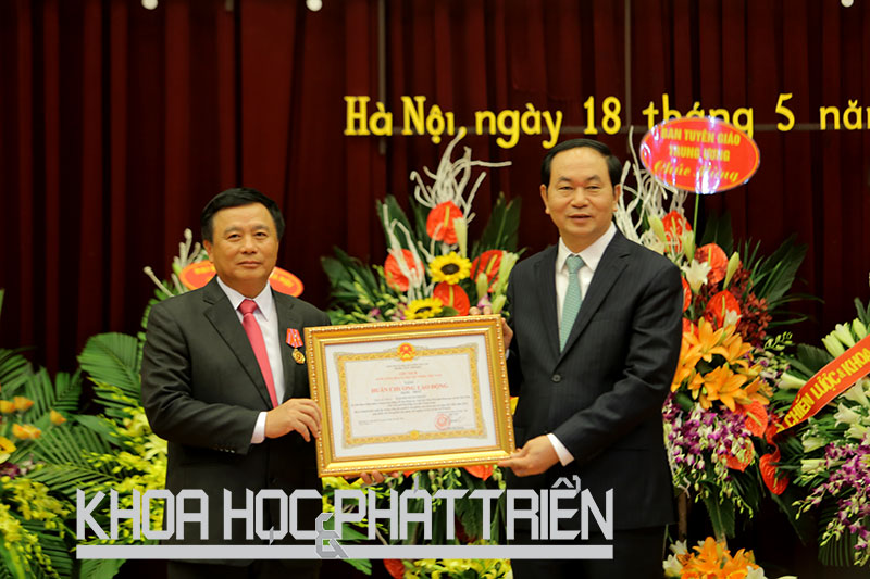 Chủ tịch nước Trần Đại Quang trao tặng thưởng Huân chương Lao động hạng Nhất cho GS. TS. Nguyễn Xuân Thắng, Giám đốc Học viện Chính trị Quốc gia Hồ Chí Minh, nguyên Chủ tịch Viện Hàn lâm Khoa học Xã hội Việt Nam.