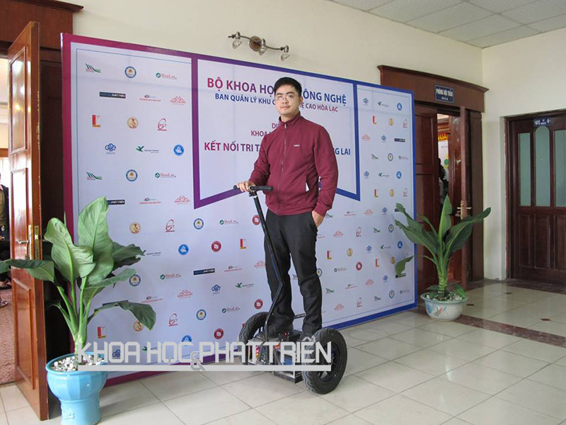 Xe 2 bánh tự cân bằng của sinh viên Đại học Thái Nguyên được trình diễn tại diễn đàn Khoa học và Công nghệ lần thứ 1.