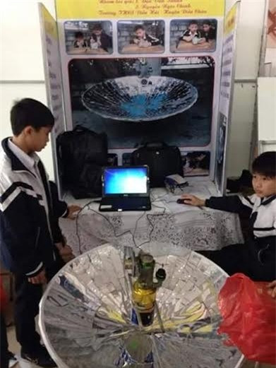 “Để hoàn thành ý tưởng, bọn em dùng hệ thống gương cầu lõm, hứng ánh sáng mặt trời. Gương cầu lõm có tác dụng biến chùm sáng song song thành chùm sáng hội tụ, cung cấp nhiệt cho động cơ đốt ngoài hoạt động. Động cơ đốt ngoài có thể đạt hiệu suất cao nhất so với các loại động cơ nhiệt khác, lại phát ra tiếng ồn nhỏ, không xả ra khói gây ảnh hưởng môi trường. Mặt khác, nguồn năng lượng mặt trời luôn có sẵn, thân thiện và bền vững với môi trường” – Thuận và Chính, hồ hởi khi nói về sáng chế của mình.