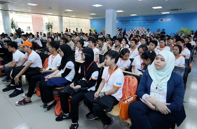 Sáng nay (11/7), tại Trường Đại học FPT trong khuôn viên Khu Công nghệ cao Hòa Lạc, Hà Nội đã chính thức diễn ra Lễ khai mạc Hội trại khoa học Odyssey ASEAN+3 cho Thiếu niên lần thứ 6 (APTJSO-6) với chủ đề "Năng lượng tái tạo cho cuộc sống".APT JSO-6 diễn ra từ ngày 10-15/7/2017 do Bộ Khoa học và Công nghệ Việt Nam phối hợp với Chương trình Trung tâm ASEAN+3 về tài năng khoa học (ACGS) tổ chức.