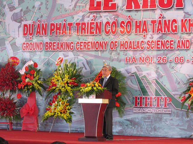Ngày 26/6/2015, tại Khu Công nghệ Cao Hòa Lạc (Km 29, Đại lộ Thăng Long, Hà Nội), Bộ Khoa học và Công nghệ (KH&CN) tổ chức Lễ khởi công Dự án Phát triển Cơ sở hạ tầng Khu Công nghệ cao (CNC) Hòa Lạc.