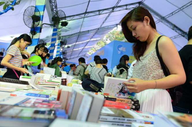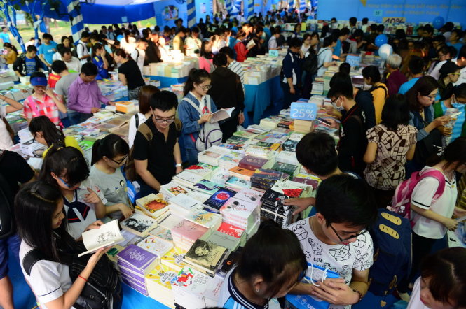 Bạn trẻ tìm mua sách tại Hội sách TP.HCM chiều 21-3 - Ảnh: Quang Định
