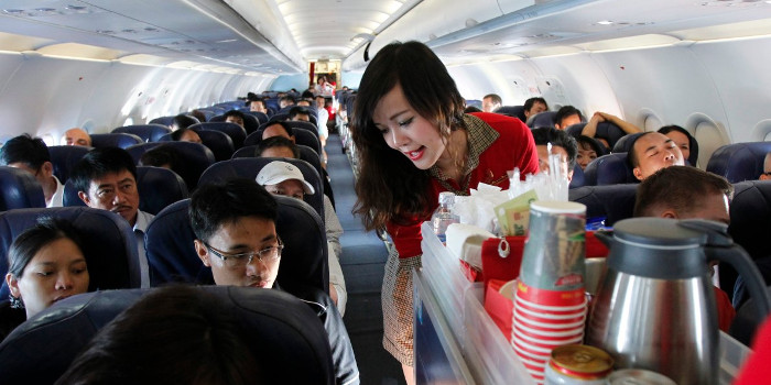 Sau khi lên máy bay, bạn sẽ được tiếp viên hướng dẫn và phục vụ.