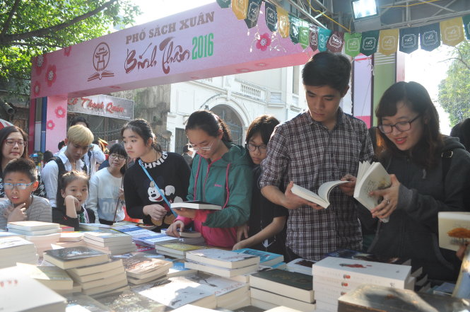 TT - Lần đầu tiên được tổ chức nhưng tính đến ngày 13-2, phố sách xuân Bính Thân 2016 tại phố Lê Thạch, Hà Nội đạt doanh thu hơn 4 tỉ đồng, với gần 100.000 bản sách được bán ra.