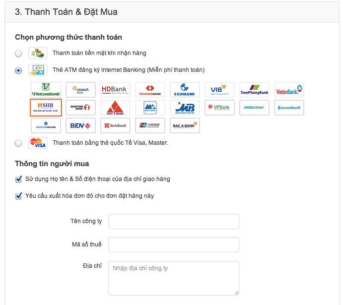 Quý khách hàng có nhu cầu xuất hoá đơn đỏ (hoá đơn VAT) cho đơn hàng của mình, vui lòng chọn ô Yêu cầu xuất hoá đơn đỏ cho đơn đặt hàng này tại Bước 3 - Thanh toán và Đặt mua.