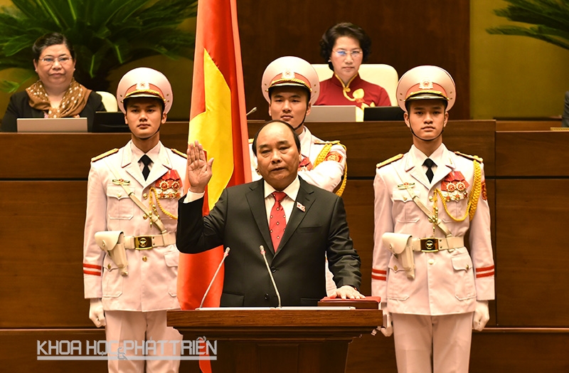 “Tôi xin chân thành cảm ơn Quốc hội đã tín nhiệm bầu tôi làm Thủ tướng nước CHXHCN Việt Nam. Trước cờ đỏ sao vàng thiêng liêng của Tổ quốc, trước Quốc hội, trước đồng bào và cả nước, tôi xin tuyên thệ tuyệt đối trung thành với Tổ quốc, với nhân dân, với Hiến pháp nước CHXHXN Việt Nam. Tôi nguyện ra sức phấn đấu rèn luyện để hoàn thành tốt nhiệm vụ mà Đảng, nhà nước và nhân dân giao phó” - Thủ tướng tuyên thệ.