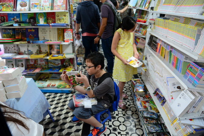 Trẻ em tìm đọc sách tại đường sách Nguyễn Văn Bình - Ảnh: Quang Định