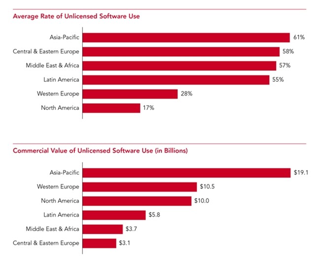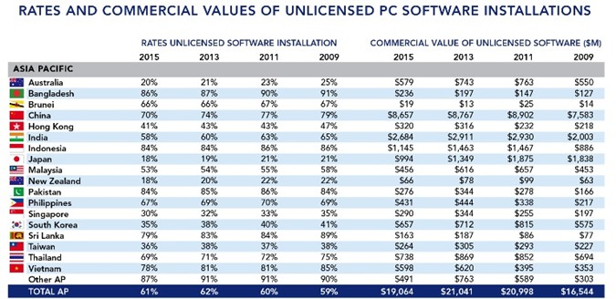 Tỷ lệ vi phạm bản quyền phần mềm tại khu vực châu Á- Thái Bình Dương.