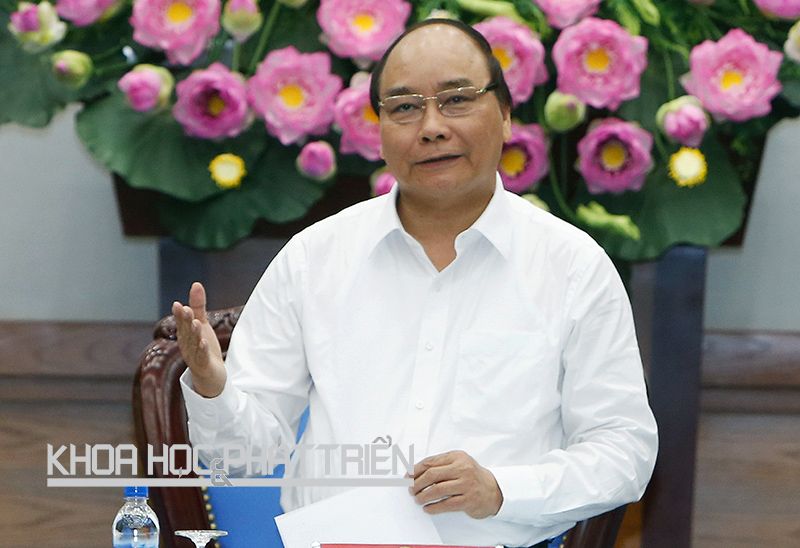 Thủ tướng Nguyễn Xuân Phúc phát biểu tại cuộc họp về biến đổi khí hậu sáng 19/4.Ảnh: TTXVN