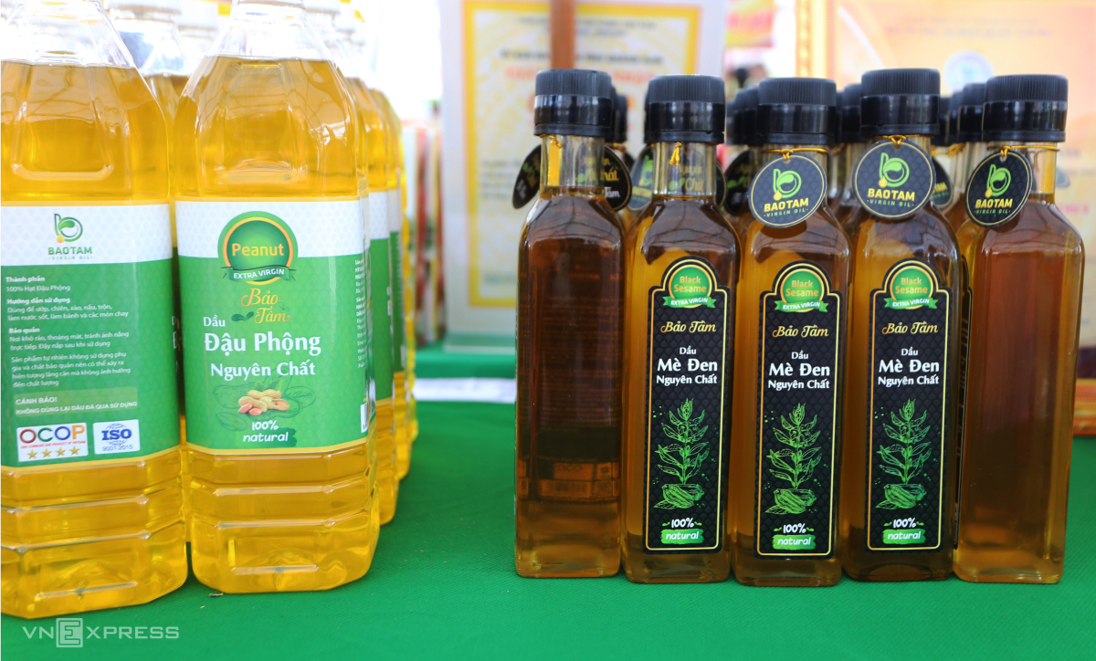 Dầu lạc (gọi là dầu phộng), dầu mè (dầu vừng) nổi tiếng của Quảng Nam trưng bày. Ông Phạm Văn Huệ, Giám đốc Hợp tác xã sản xuất dầu thực vật nguyên chất Bảo Tâm cho hay đã áp dụng công nghệ sản xuất hiện đại, hàng đầu như hệ thống ép dầu, lọc dầu, chiết rót, đóng chai tự động, khép kín. Hợp tác xã kết hợp quy trình sản xuất tinh gọn, hiệu quả nhằm tạo ra sản phẩm chất lượng để cung cấp cho các thị trường cao cấp toàn quốc và xuất khẩu.