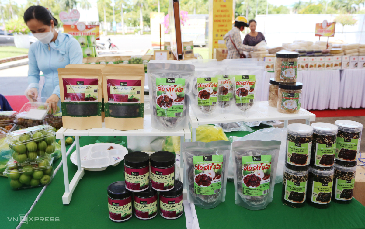 Từ vùng đất Ninh Thuận, các doanh nghiệp giới thiệu các sản phẩm đặc trưng gồm táo, nho sấy khô và dẻo. Quá trình sản xuất đã lắp đặt dây chuyền sấy nông sản và hệ thống xử lý bảo quản nho, táo theo công nghệ khí điều biến đạt chuẩn vệ sinh an toàn thực phẩm.