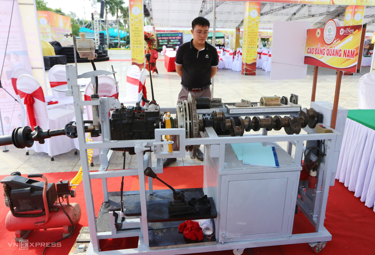 Ngoài các sản phẩm sáng tạo khởi nghiệp, Techfest Quảng Nam 2024 thu hút nhiều gian hàng công nghệ của trường đại học, doanh nghiệp khởi nghiệp giới thiệu. Mô hình hệ thống truyền lực ôtô do Khoa ôtô - cơ khí xây dựng (Trường Cao đẳng Quảng Nam) trưng bày.