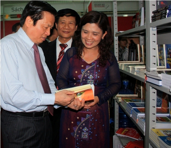 Bộ trưởng Bộ Thông tin và Truyền thông Lê Doãn Hợp thăm gian hàng trưng bày sách của NXB Thông tin và Truyền thông tại Hội chợ triển lãm sách quốc tế lần thứ III - 2010