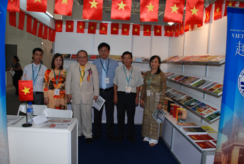 Ông Trần Chí Đạt – PGĐ NXB (thứ nhất từ trái sang) cùng đoàn cán bộ xuất bản Việt Nam tại hội chợ