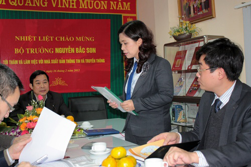 Tại buổi làm việc, Bộ trưởng Nguyễn Bắc Son đã xem video clip báo cáo kết quả công tác năm 2011, đồng thời nghe Giám đốc – Tổng Biên tập Nhà xuất bản Thông tin và Truyền thông Nguyễn Thị Thu Hà báo cáo về các công tác trọng điểm của NXB trong thời gian tới, những khó khăn, vướng mắc và một số kiến nghị nhằm tháo gỡ khó khăn để NXB hoàn thành tốt nhiệm vụ trong năm 2012.