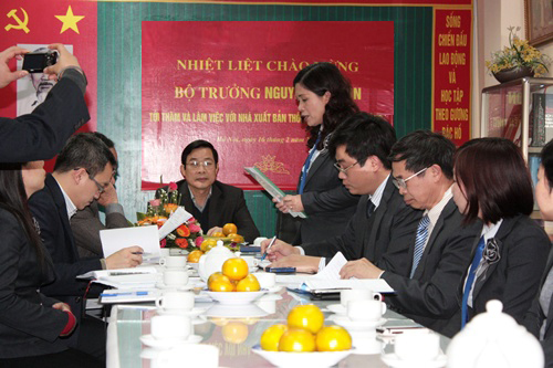 Về các kiến nghị của Nhà xuất bản, Bộ trưởng sẽ làm việc với các đơn vị chuyên trách và có chỉ đạo cụ thể trong thời gian tới. Riêng với công tác xuất bản và phát hành hệ thống sách Thông tin đối ngoại, Bộ trưởng hoàn toàn nhất trí với kiến nghị của NXB, Bộ sẽ làm việc với các đơn vị thực hiện nhiệm vụ Thông tin đối ngoại để NXB sẽ là đơn vị thực hiện xuất bản và phát hành mảng sách này theo đúng tôn chỉ, mục đích mà Bộ đã giao.