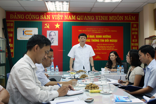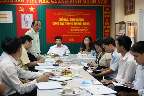 Tại buổi làm việc, bà Nguyễn Thị Thu Hà – Giám đốc, Tổng Biên tập Nhà xuất bản Thông tin và Truyền thông đã báo cáo tình hình thực hiện sách phục vụ thông tin đối ngoại của Nhà xuất bản Thông tin và Truyền thông giai đoạn 2009 - 2012. Theo đó, thực hiện nhiệm vụ của Bộ Thông tin và Truyền thông giao về công tác thông tin đối ngoại, Nhà xuất bản Thông tin và Truyền thông đã nghiên cứu, tìm cho mình hướng đi theo tinh thần của Chỉ thị số 26/CT-TW ngày 10/9/2008 của Ban Bí thư về tiếp tục đổi mới và tăng cường công tác thông tin đối ngoại trong tình hình mới. Từ năm 2009, Nhà xuất bản đã tập trung xuất bản những xuất bản phẩm giới thiệu về lịch sử, văn hóa, con người Việt Nam ra nước ngoài, sách về biển đảo, sách tuyên truyền đấu tranh chống những luận điệu sai trái của thế lực thù địch,…