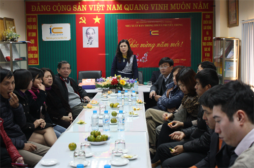 Tại cuộc gặp mặt này, Bà Nguyễn Thị Thu Hà - Giám đốc, Tổng Biên tập NXB đã thay mặt CBVC NXB báo cáo tóm tắt về phương hướng nhiệm vụ của NXB trong năm 2014. Theo đó, toàn thể cán bộ viên chức NXB quyết tâm phấn đấu để hoàn thành mọi nhiệm vụ chính trị được Bộ Thông tin và Truyền thông giao.
