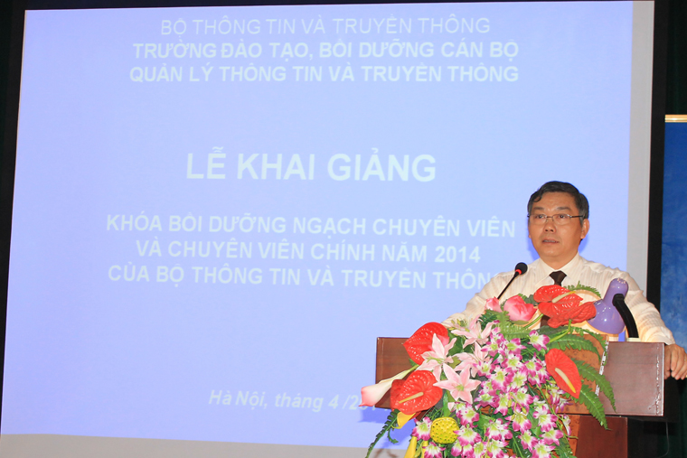(Mic.gov.vn) - Ngày 15/04/2014, tại Hà Nội, Trường Đào tạo, bồi dưỡng cán bộ quản lý Thông tin và Truyền thông đã tổ chức Lễ khai giảng "Khóa bồi dưỡng ngạch chuyên viên và chuyên viên chính năm 2014 của Bộ Thông tin và Truyền thông”. Thứ trưởng Bộ Thông tin và Truyền thông Trần Đức Lai đã tới dự và phát biểu tại Lễ khai giảng.