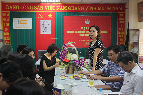 Đ/c Trần Chí Đạt, Phó Giám đốc - Chủ tịch Công đoàn NXB thay mặt chuyên môn, công đoàn và toàn thể nam cán bộ viên chức NXB chúc mừng các nữ CBVC nhân ngày 20/10