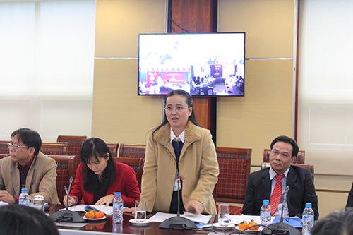 Bà Nguyễn Hương Giang (Phó Vụ trưởng Vụ Thông tin cơ sở) phát biểu tại Hội nghị