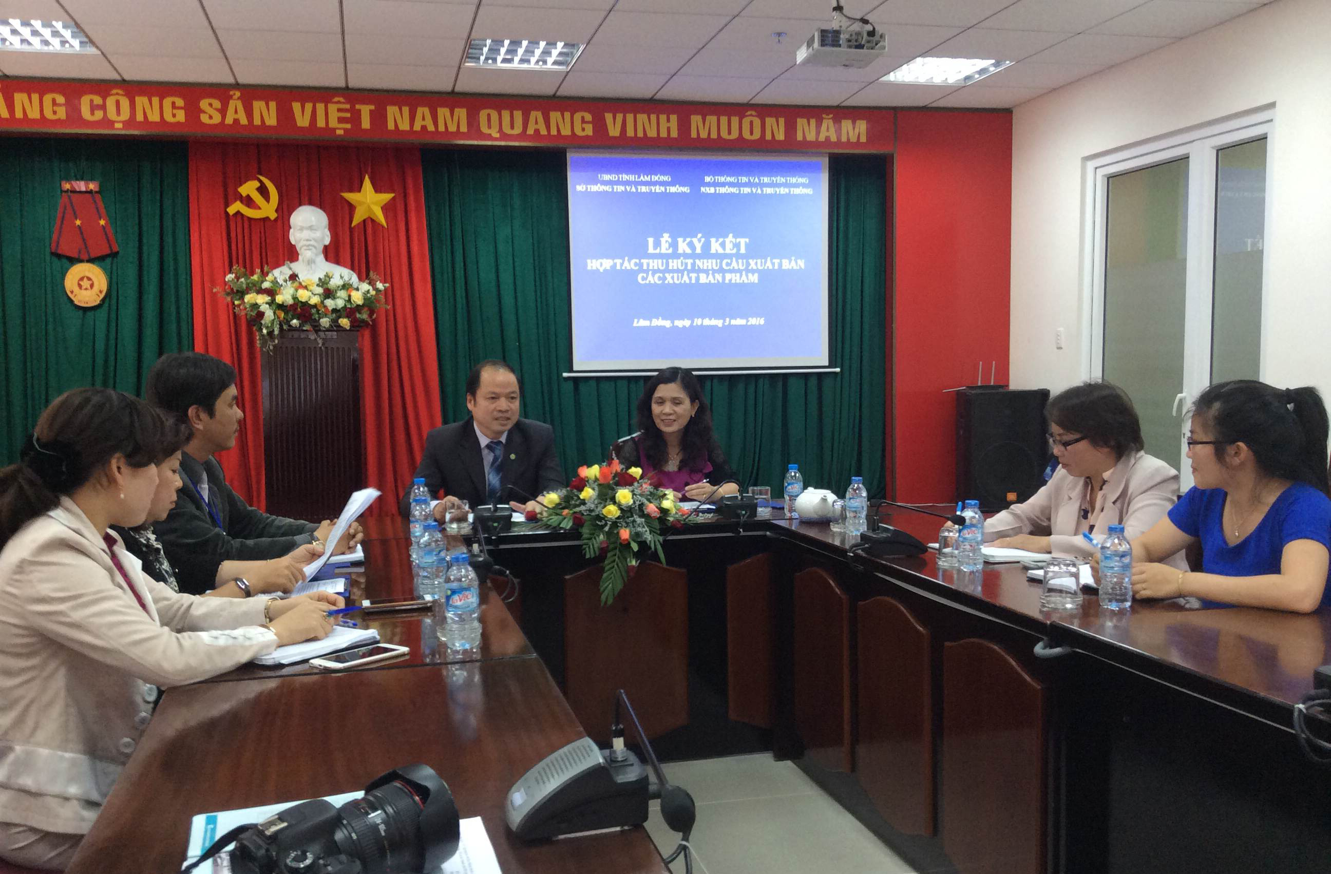 Chiều ngày 10/3/2016, Nhà xuất bản Thông tin và Truyền thông đã có buổi làm việc với Sở Thông tin và Truyền thông tỉnh Lâm Đồng để ký kết biên bản ghi nhớ hợp tác trên một số lĩnh vực công tác. Về phía Nhà xuất bản Thông tin và Truyền thông có bà Nguyễn Thị Thu Hà - Giám đốc, Tổng biên tập NXB, cùng đại diện Lãnh đạo Chi nhánh NXB tại Tây Nguyên. Về phía Sở TT&TT Lâm Đồng có Ông Nguyễn Viết Vân - Giám đốc Sở cùng đại diện một số phòng chuyên môn liên quan.