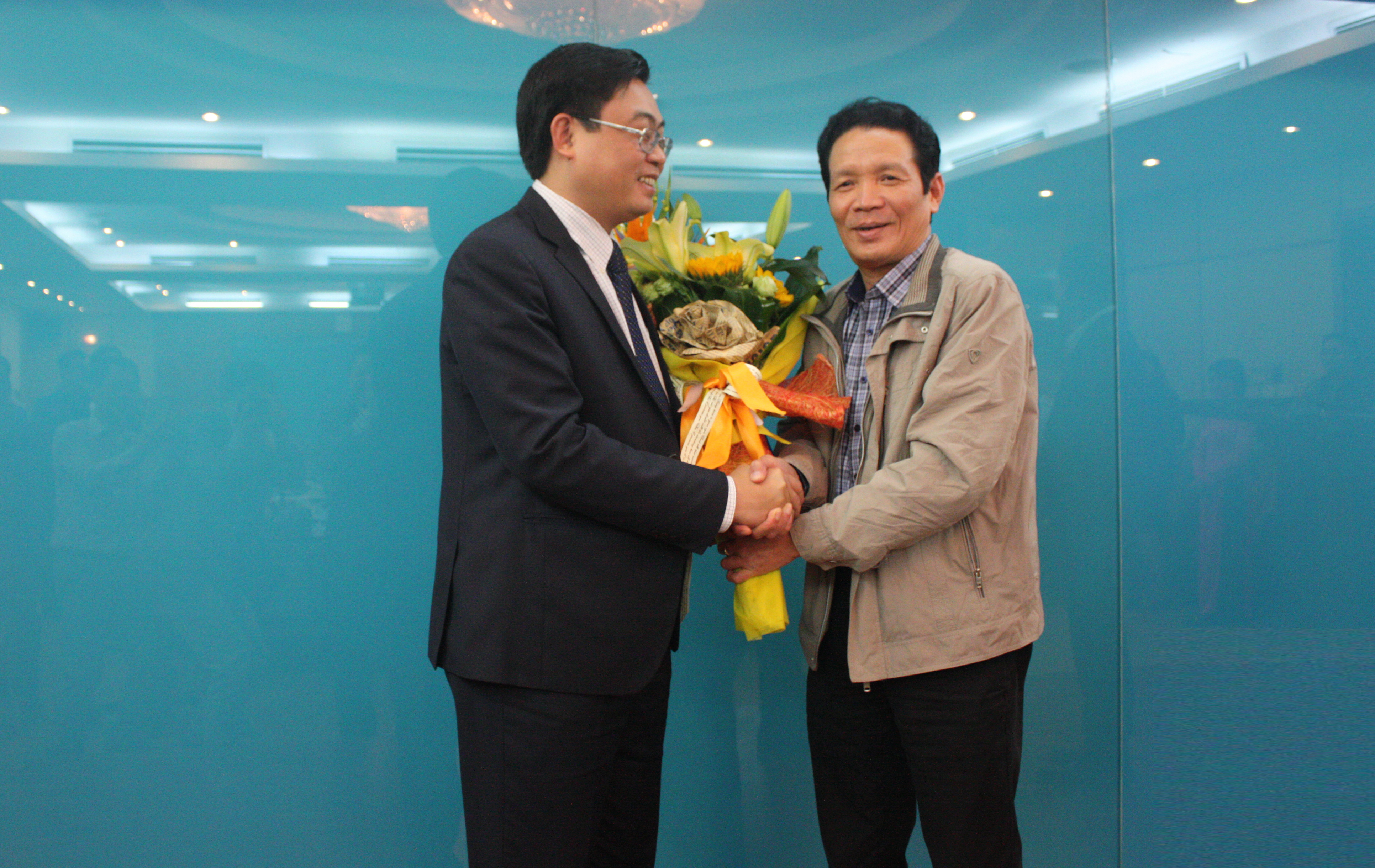Thứ trưởng Trương Minh Tuấn cùng Ban Giám đốc NXB chúc mừng ông Trần Chí Đạt