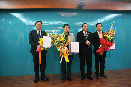 Thứ trưởng Trương Minh Tuấn trao quyết định bổ nhiệm cho ông Trần Chí Đạt (thứ nhất bên trái),