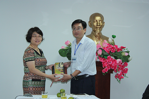 Ông Trần Chí Đạt – Giám đốc, Tổng biên tập NXB TT&TT trao tặng sách về Thăng Long – Hà Nội cho bà Tào Bổi Lôi – Phó Tổng biên tập NXB Nhân dân Thượng Hải