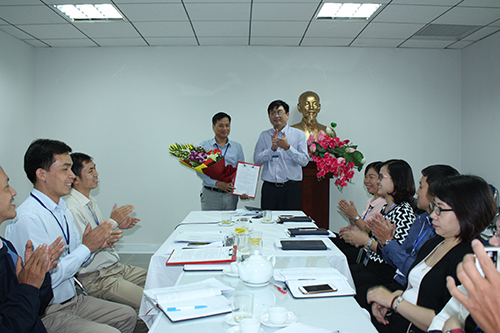 Ban Lãnh đạo và các cán bộ chủ chốt NXB chúc mừng hai đồng chí được bổ nhiệm