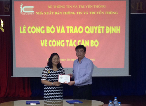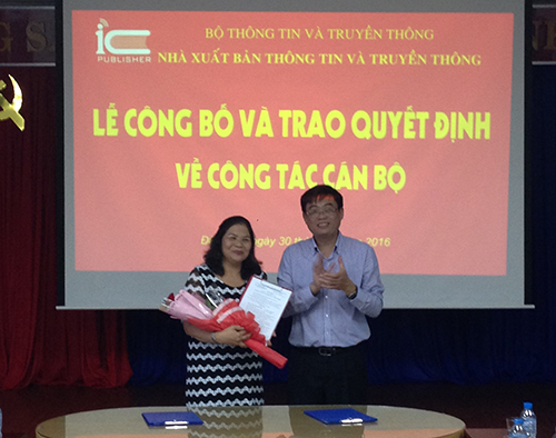 Chiều ngày 30/11/2016, tại chi nhánh Nhà xuất bản Thông tin và Truyền thông thành phố Đà Nẵng, ông Trần Chí Đạt – Giám đốc, Tổng Biên tập NXB đã trao Quyết định giao nhiệm vụ Phó Trưởng Chi nhánh phụ trách Chi nhánh NXB tại thành phố Đà Nẵng.