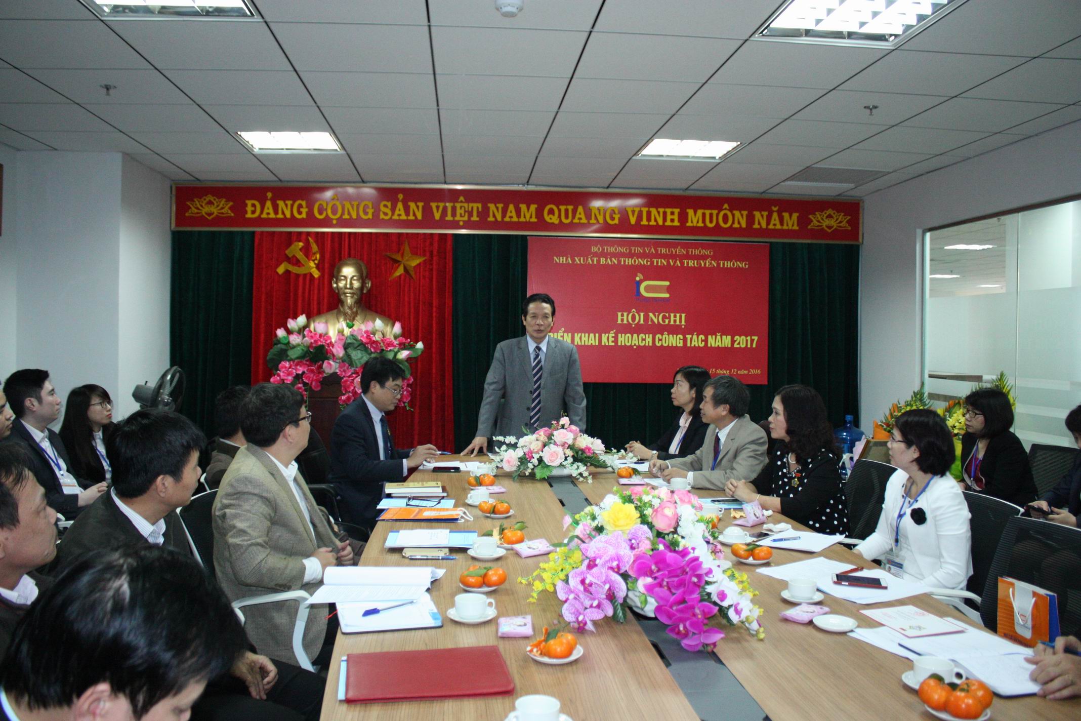 Sáng ngày 15/12/2016, tại trụ sở (tầng 6, tòa nhà 115 Trần Duy Hưng, Cầu Giấy, Hà Nội), Nhà xuất bản Thông tin và Truyền thông đã tổ chức Hội nghị triển khai công tác năm 2017. Hội nghị diễn ra trực tuyến tại cả bốn đầu cầu Hà Nội, Đà Nẵng, TP. Hồ Chí Minh và Tây Nguyên. Tới dự và chỉ đạo Hội nghị có Thứ trưởng Bộ Thông tin và Truyền thông Hoàng Vĩnh Bảo; cùng sự tham dự của lãnh đạo một số cơ quan, đơn vị thuộc Bộ và toàn thể cán bộ viên chức của Nhà xuất bản TT&TT ở cả bốn đầu cầu truyền hình.