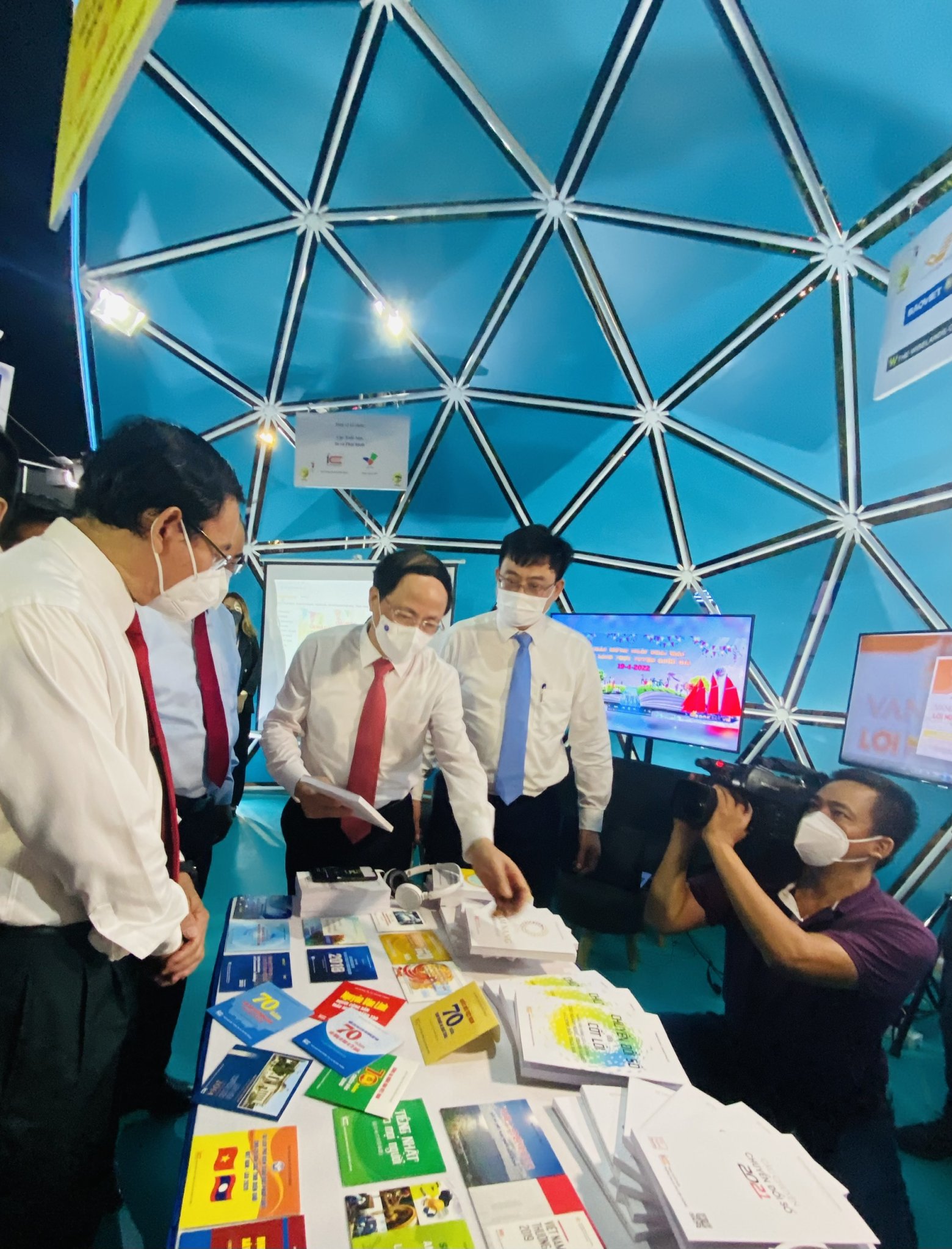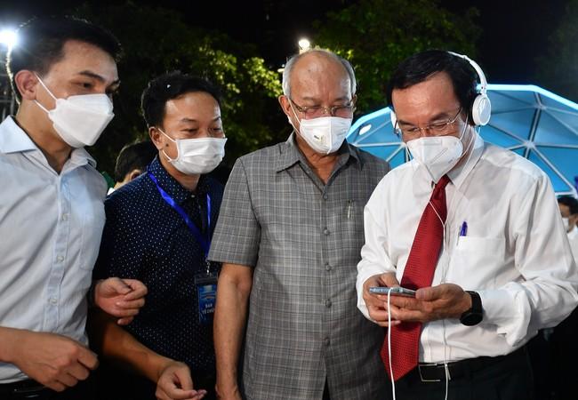 Ủy viên Bộ Chính trị, Bí thư Thành ủy TP.HCM Nguyễn Văn Nên và các đại biểu tham quan khu trưng bày sách chuyển đổi số...