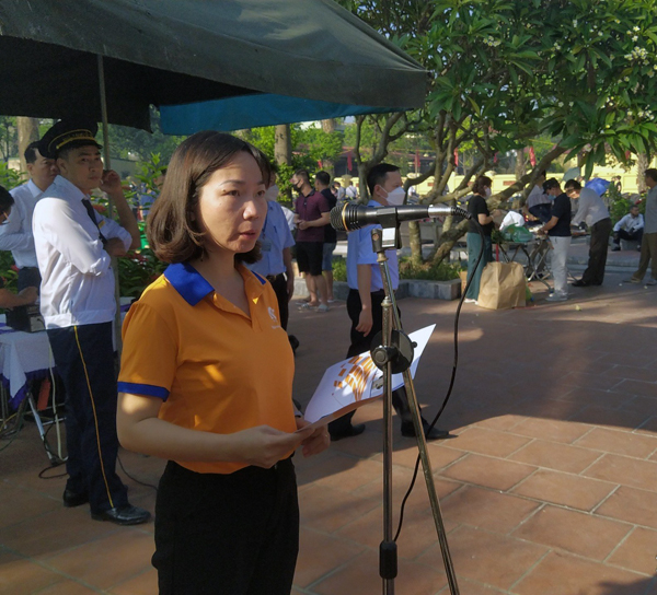 Đồng chí Ngô Thị Mỹ Hạnh - Phó Giám đốc - Phó Tổng biên tập, chủ tịch Công đoàn NXB phát biểu tri ân tại lễ viếng nghĩa trang liệt sĩ Ngọc Hồi