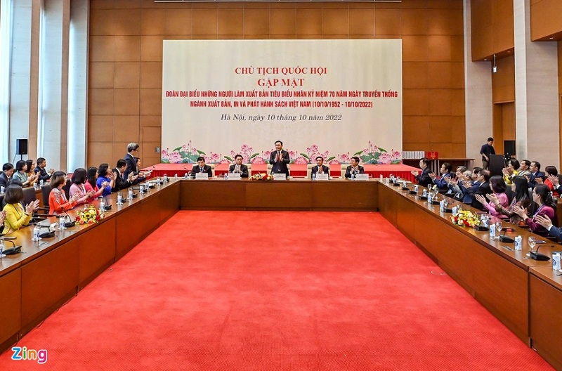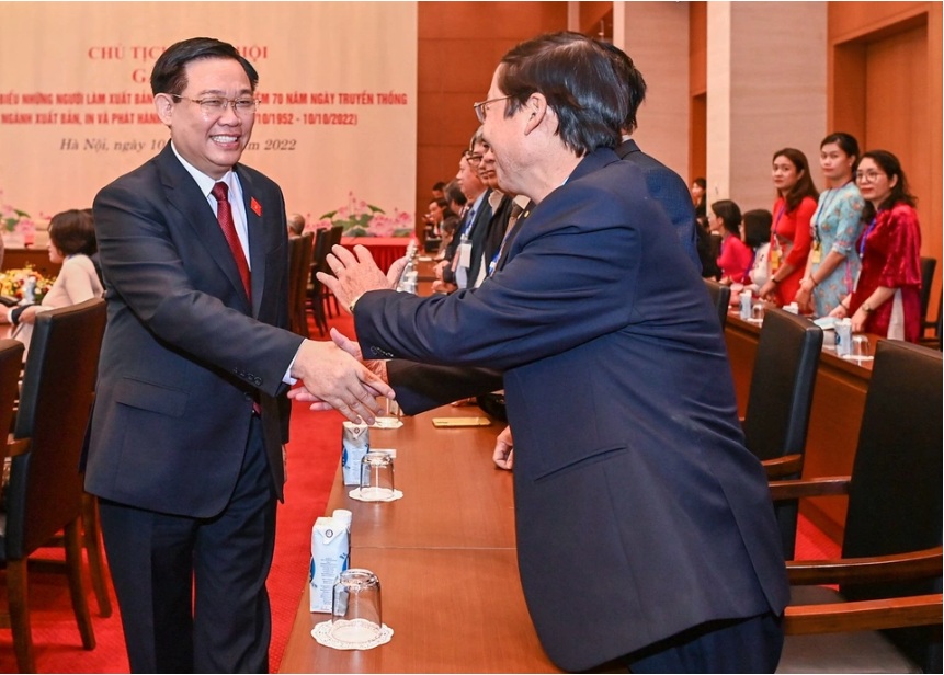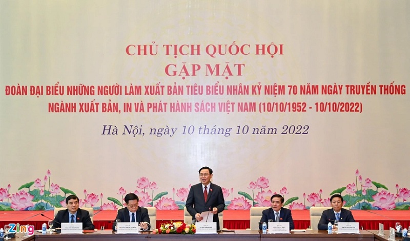 Chủ tịch Quốc hội Vương Đình Huệ bày tỏ niềm vui khi được gặp mặt những đại biểu đại diện cho 57 nhà xuất bản và hàng nghìn cơ sở in, cơ sở phát hành trên cả nước về dự Kỷ niệm 70 năm Ngày truyền thống ngành xuất bản, in và phát hành sách Việt Nam. Chủ tịch Quốc hội ghi nhận những đóng góp của các cá nhân, đơn vị làm xuất bản.
