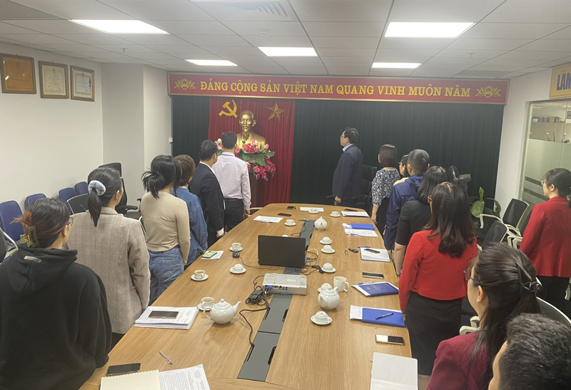 Các thành viên trong Hội đồng tuyển dụng và thí sinh thực hiện nghi thức chào cờ