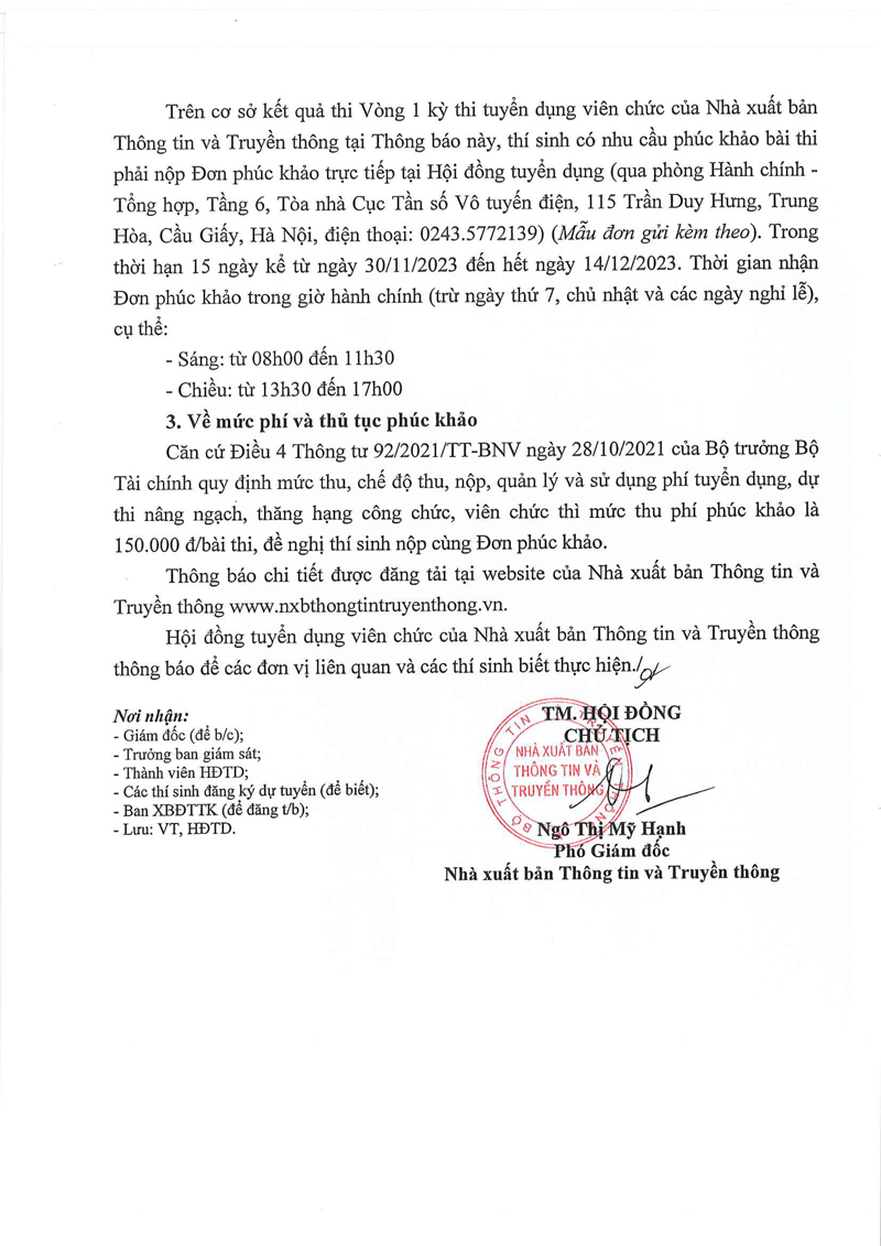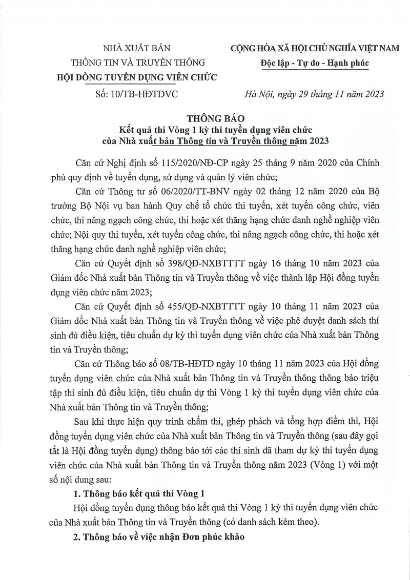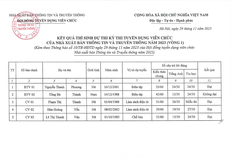 Thông báo kết quả thi vòng 1 - Kỳ thi tuyển dụng viên chức năm 2023