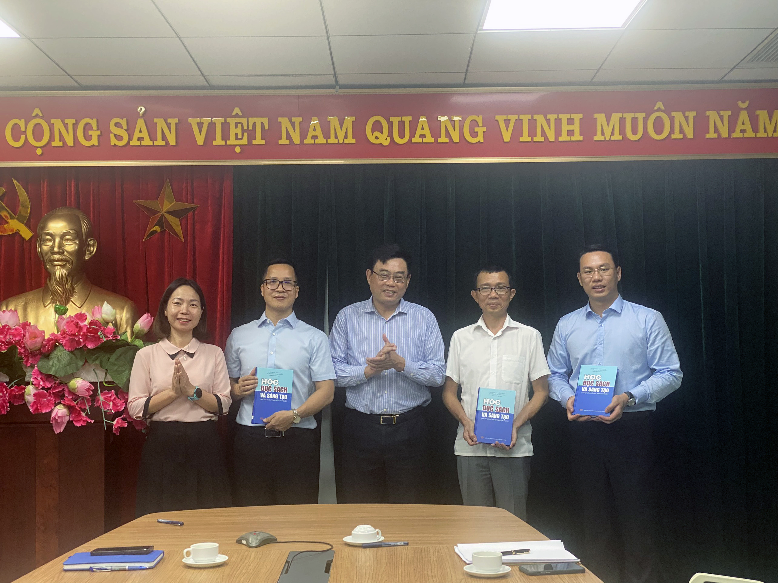 Lãnh đạo Nhà xuất bản trao tặng Lãnh đạo và cán bộ Viện Nghiên cứu Lịch sử và Văn hóa Việt cuốn sách "Học - Đọc sách và sáng tạo" do NXB vừa xuất bản