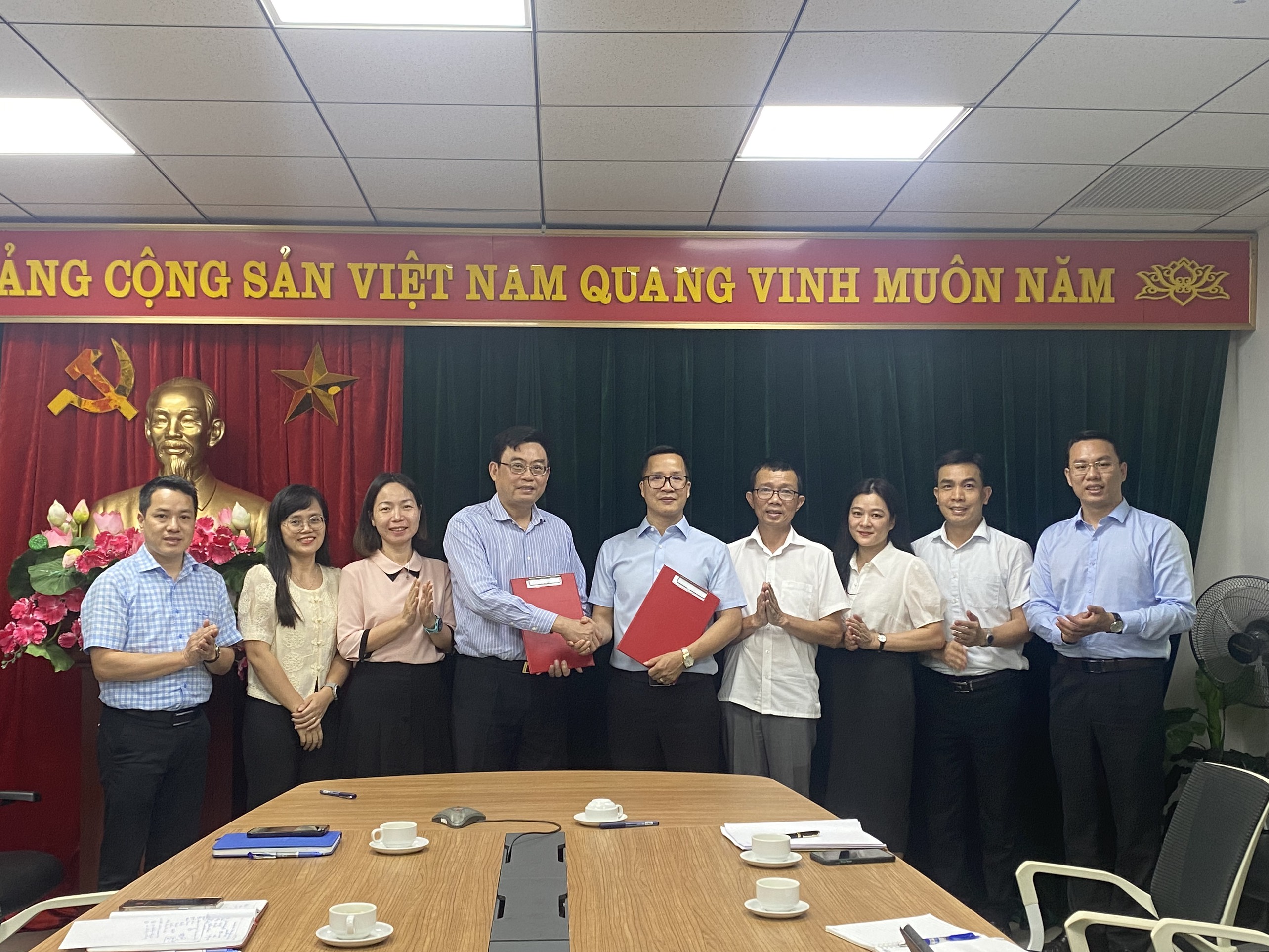 Lãnh đạo hai đơn vị trao biên bản ghi nhớ hợp tác