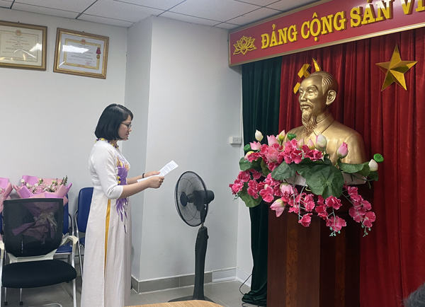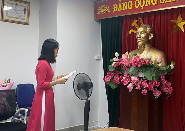 Tại buổi Lễ, sau khi nghe đồng chí Ngô Thị Mỹ Hạnh - Phó Bí thư Chi bộ công bố Quyết định kết nạp Đảng, đồng chí Trần Chí Đạt, Bí thư Chi bộ NXB Thông tin và Truyền thông đã trao Quyết định kết nạp cho đồng chí Trần Thị Đào Hiếu và đồng chí Đặng Thị Dung.
