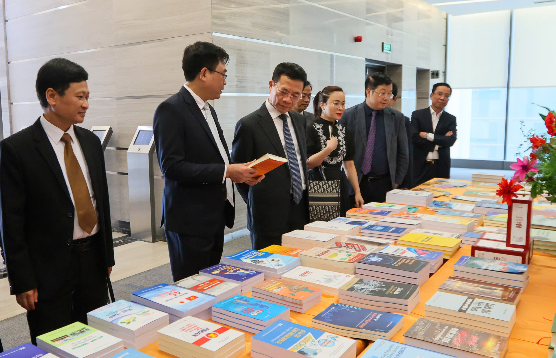 Bộ trưởng Bộ TT&TT Nguyễn Mạnh Hùng tham quan và nghe giới thiệu về sách và xuất bản phẩm do NXB TT&TT xuất bản