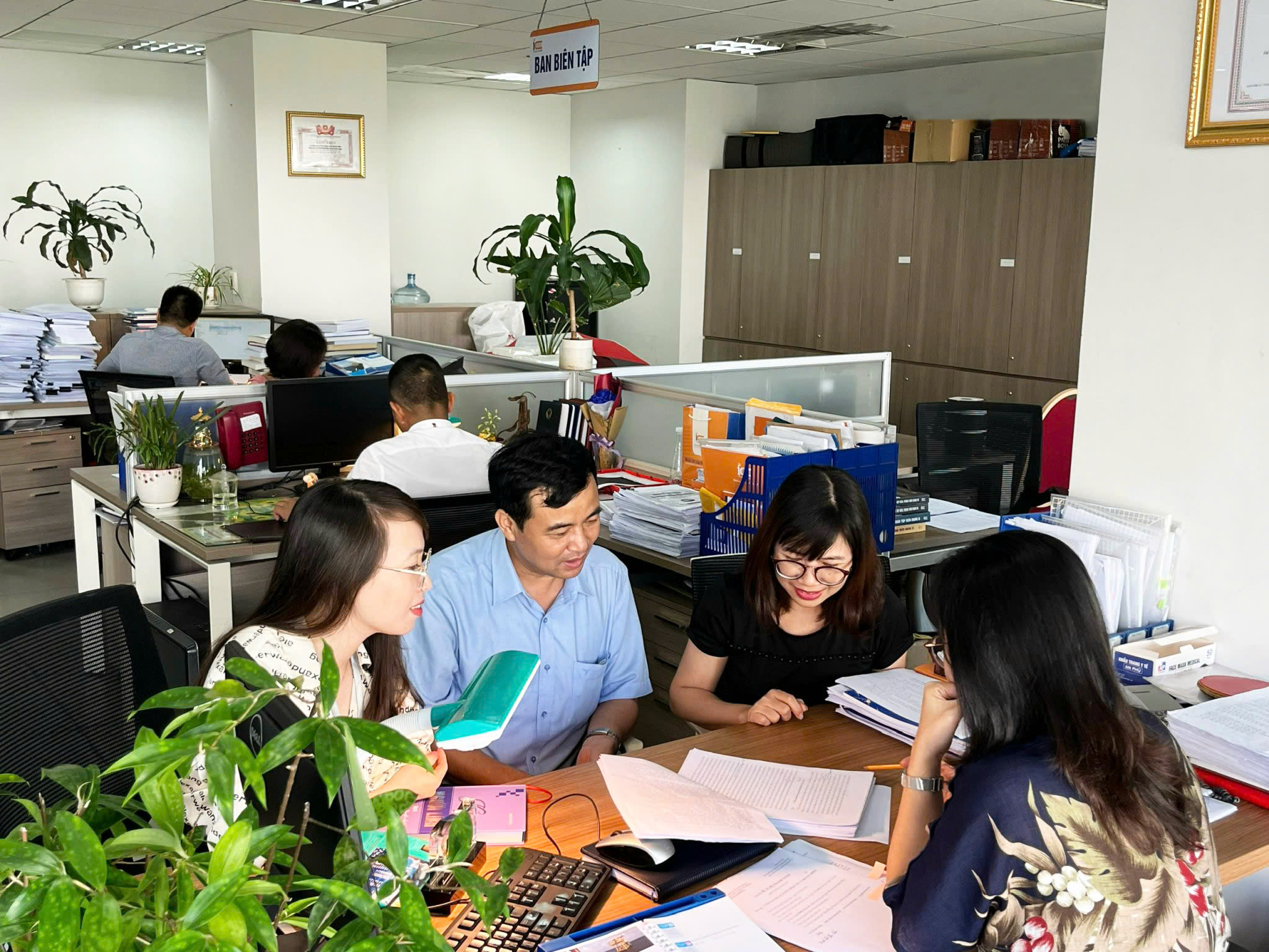 Cán bộ, biên tập viên Nhà xuất bản Thông tin và Truyền thông trao đổi nghiệp vụ