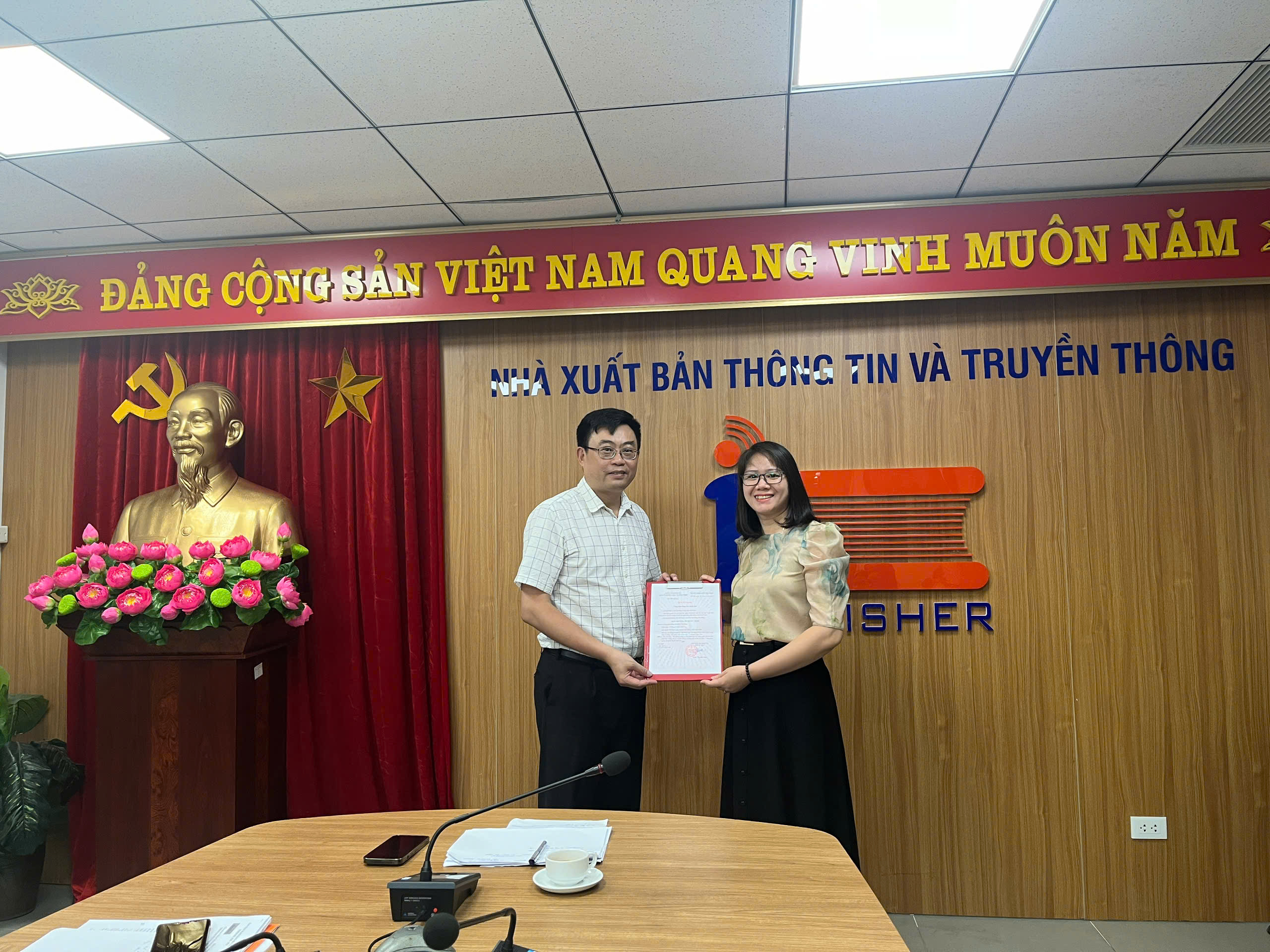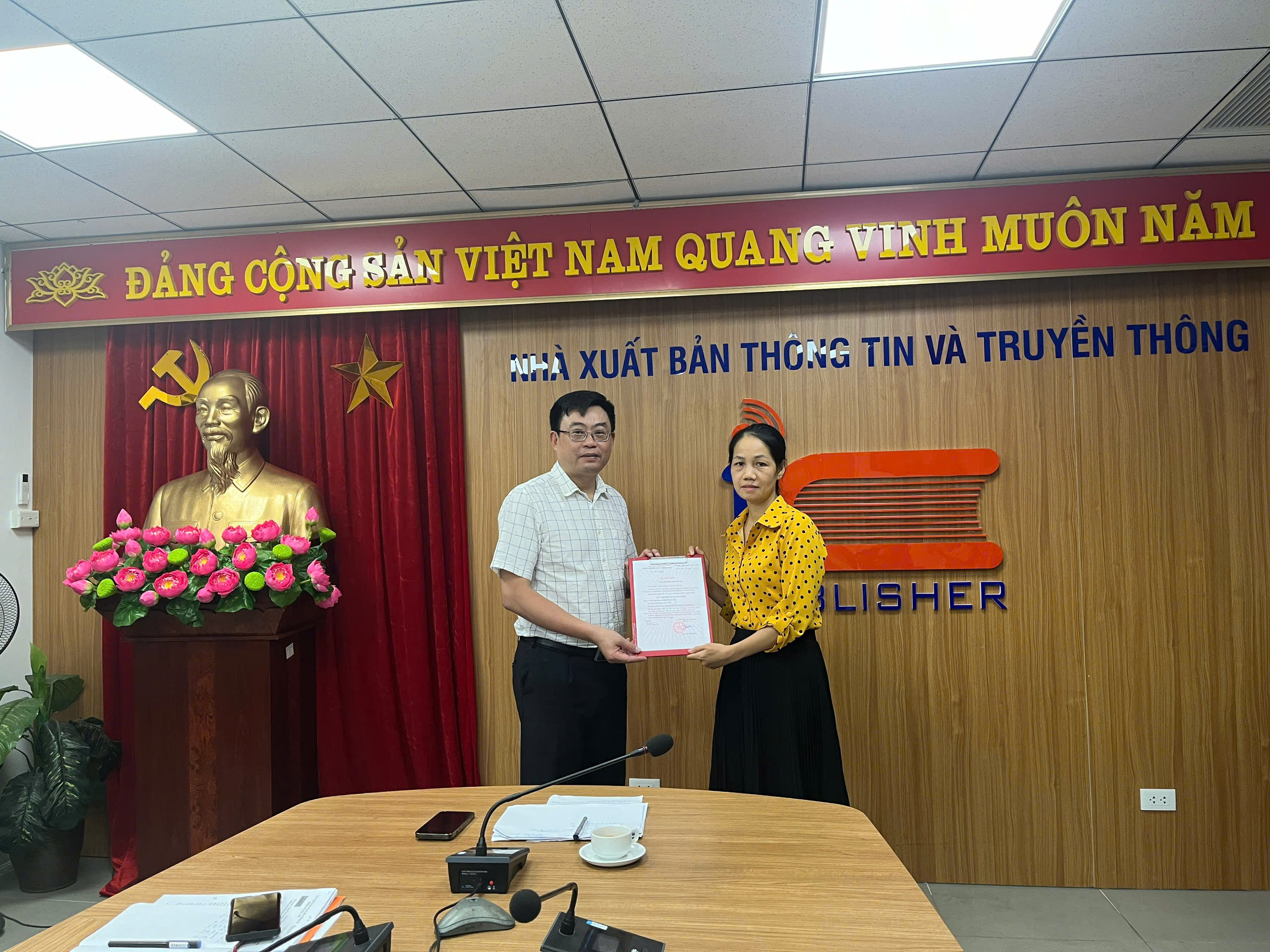 Ông Trần Chí Đạt - Bí thư Chi bộ, Giám đốc, Tổng Biên tập NXB trao Quyết định công nhận đảng viên chính thức cho 02 đảng viên dự bị