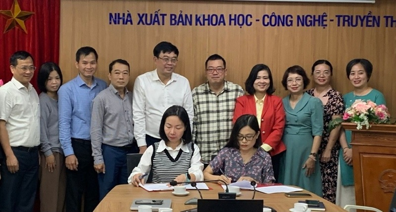 Ảnh: Lễ ký kết hợp tác giữa NXB KH-CN-TT và Công ty Cổ phần Sách Omega Việt Nam.