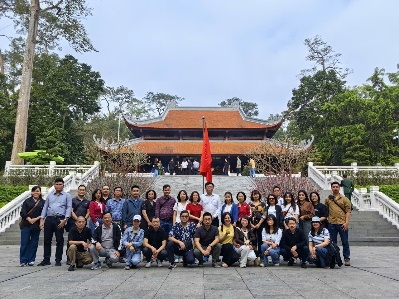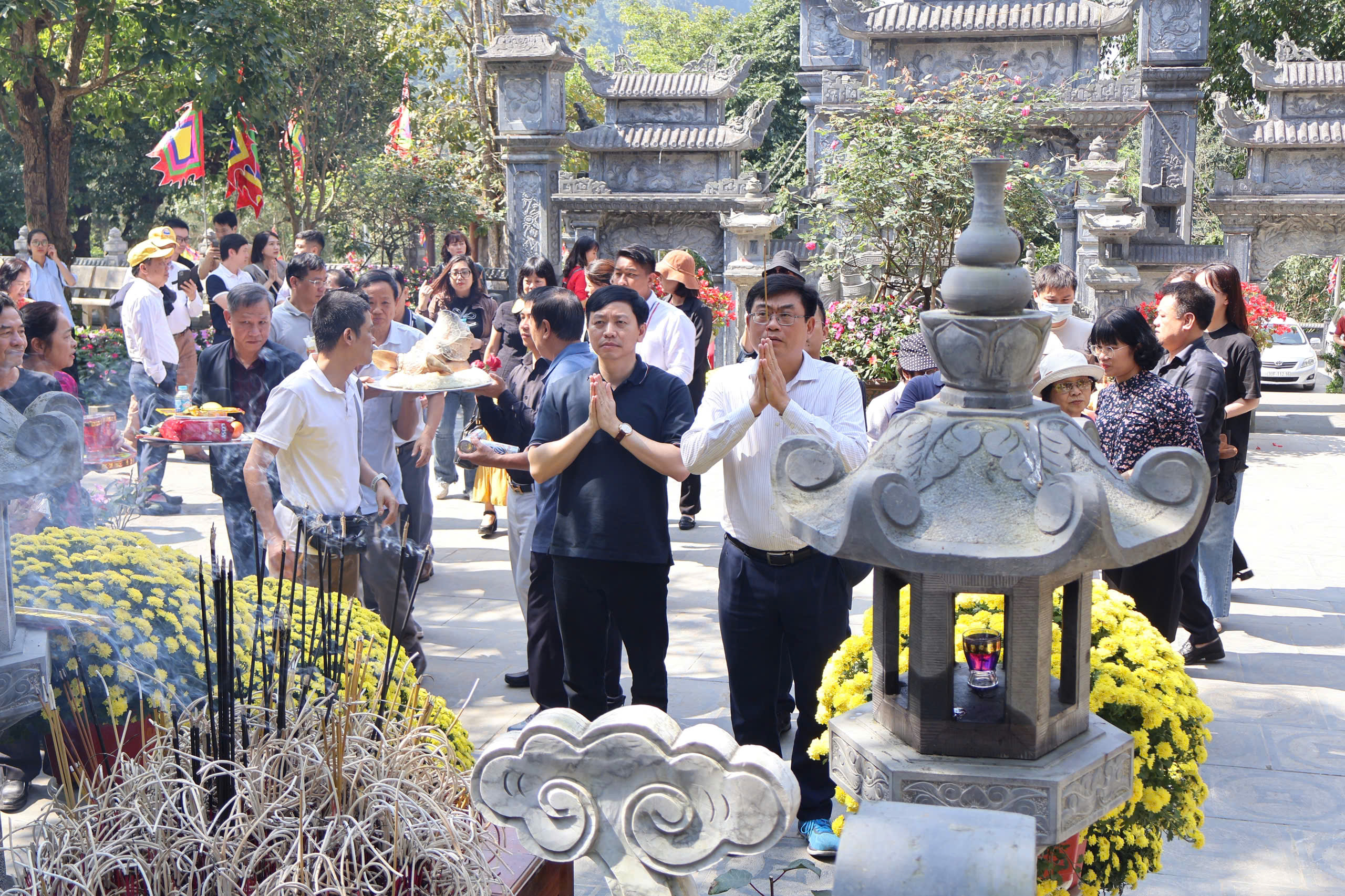 Tiếp đó, đoàn di chuyển tới Đền Trung (Ba Vì) - một địa điểm tâm linh gắn với tín ngưỡng thờ các Vua Hùng và truyền thống “uống nước nhớ nguồn” của dân tộc. Trong không gian linh thiêng giữa núi rừng Ba Vì, đoàn đã thành kính dâng hương, cầu mong một năm mới bình an, thuận lợi và nhiều thành công trong công việc.