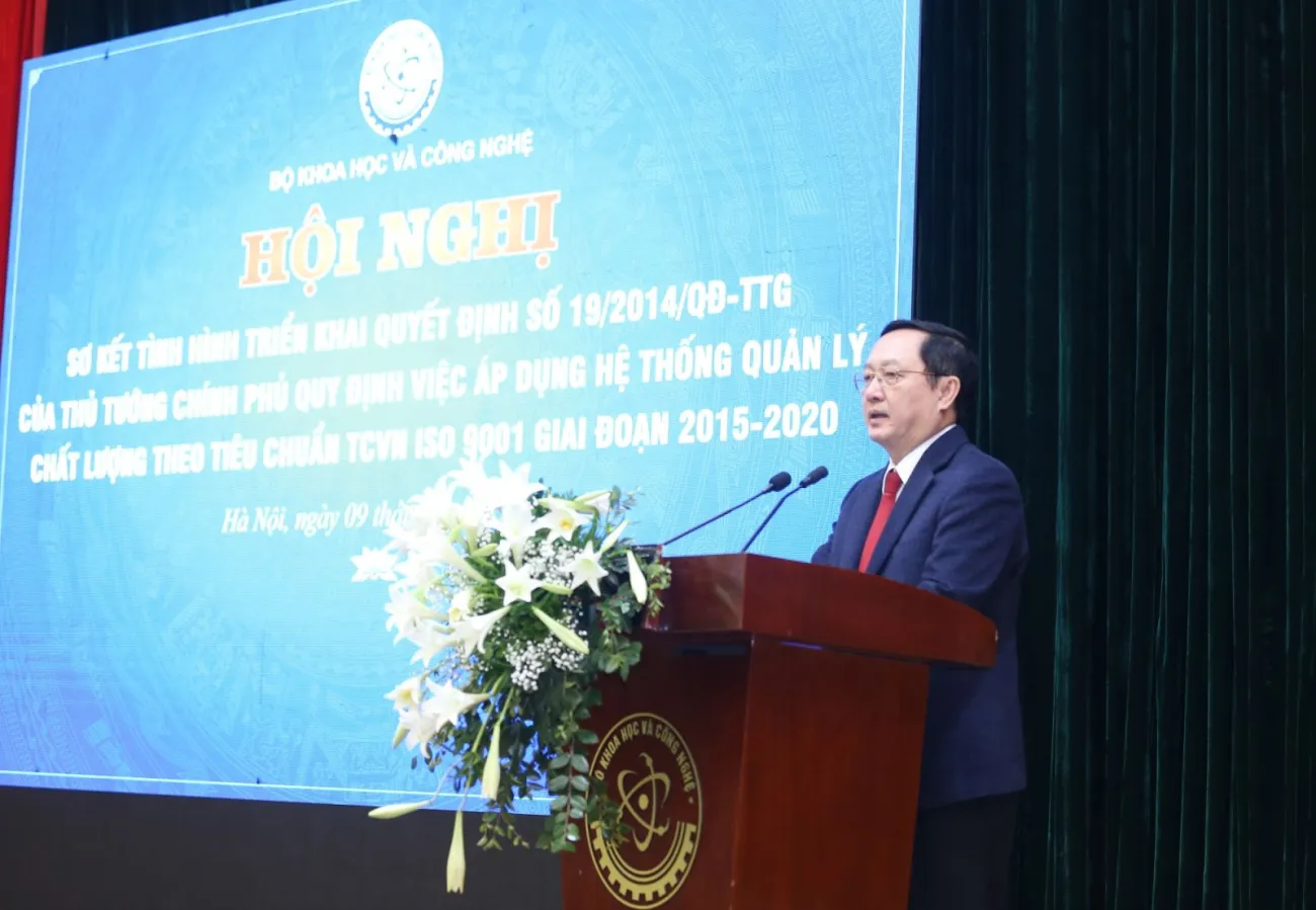 PGS.TS Huỳnh Thành Đạt - Ủy viên BCH Trung ương Đảng, Bộ trưởng Bộ KH&CN phát biểu tại Hội nghị.Sau hơn 7 năm triển khai, hệ thống quản lý chất lượng (HTQLCL) theo tiêu chuẩn quốc gia TCVN ISO 9001:2008, sau này được nâng cấp thành tiêu chuẩn quốc gia TCVN ISO 9001:2015 đã khẳng định được vai trò là một công cụ quan trọng, hỗ trợ cho các cơ quan hành chính nhà nước trong việc chuẩn hóa các quá trình giải quyết công việc, cải tiến phương thức thực thi công vụ với mục tiêu hướng tới sự hài lòng của tổ chức, cá nhân công dân có liên quan; minh bạch hóa các quy trình giải quyết thủ tục hành chính, hướng đến một nền hành chính hiện đại, dân chủ, trong sạch và vững mạnh.Đó là nhận định của PGS.TS Huỳnh Thành Đạt - Ủy viên BCH Trung ương Đảng, Bộ trưởng Bộ Khoa học và Công nghệ (KH&CN) tại Hội nghị sơ kết tình hình thực hiện Quyết định số 19/2014/QĐ-TTg ngày 05/3/2014 của Thủ tướng Chính phủ về việc áp dụng Hệ thống quản lý chất lượng theo tiêu chuẩn quốc gia TCVN ISO 9001:2008 vào hoạt động của các cơ quan, tổ chức thuộc hệ thống hành chính nhà nước